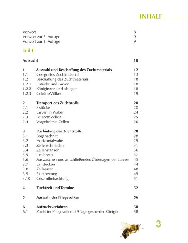 Mit der Neuauflage des 1989 erstmals veröffentlichten Buches über die praktische Seite der Bienenzucht ist F. K. Tiesler ein wirklich großer Wurf gelungen. War das Buch vormals eng bedruckt und mit hauptsächlich schwarz-weißen Bildern eher ein Lehrbuch für besonders eifrige Bienenzüchter, so hat es sich heute zu einem ansprechenden Fachbuch über die Zuchttechnik für jeden Interessierten entwickelt. Der Inhalt geht von der Auswahl und Beschaffung des Zuchtmaterials über die verschiedenen Techniken der Zuchtstoffdarbietung im Volk, die Auswahl des Pflegevolkes und die verschiedenen Aufzuchtverfahren bis zur Herrichtung und dem Versand der Begattungsvölkchen. Außerdem: Behandlung und Beurteilung der Königin nach der Begattung und das Zusetzen in ein neu zu beweiselndes Volk sowie zwei Kapitel über den Einfluss der wichtigsten Bienenkrankheiten auf die Zuchtarbeit und die tierseuchenrechtlichen Bestimmungen für die Ein- und Ausfuhr von Bienenköniginnen innerhalb Deutschlands und in der EU. Ein rundum gelungenes Buch mit einer präzisen Anleitung nicht für Anfänger in der Bienenzucht. Die jahrzehntelange Erfahrung der beiden Autoren bietet auch dem fortgeschrittenen Züchter den einen oder anderen Tipp zur rationelleren Gestaltung seiner Zuchtarbeit.