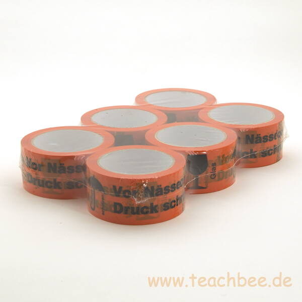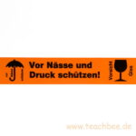 Aufdruck in Schwarz: Vor Nässe und Druck schützen!