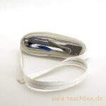 Einfach den Gurt um die Beute legen, das lose Ende in einer Schlaufe in den Bügel legen, den Bügel umklappen und sichern.